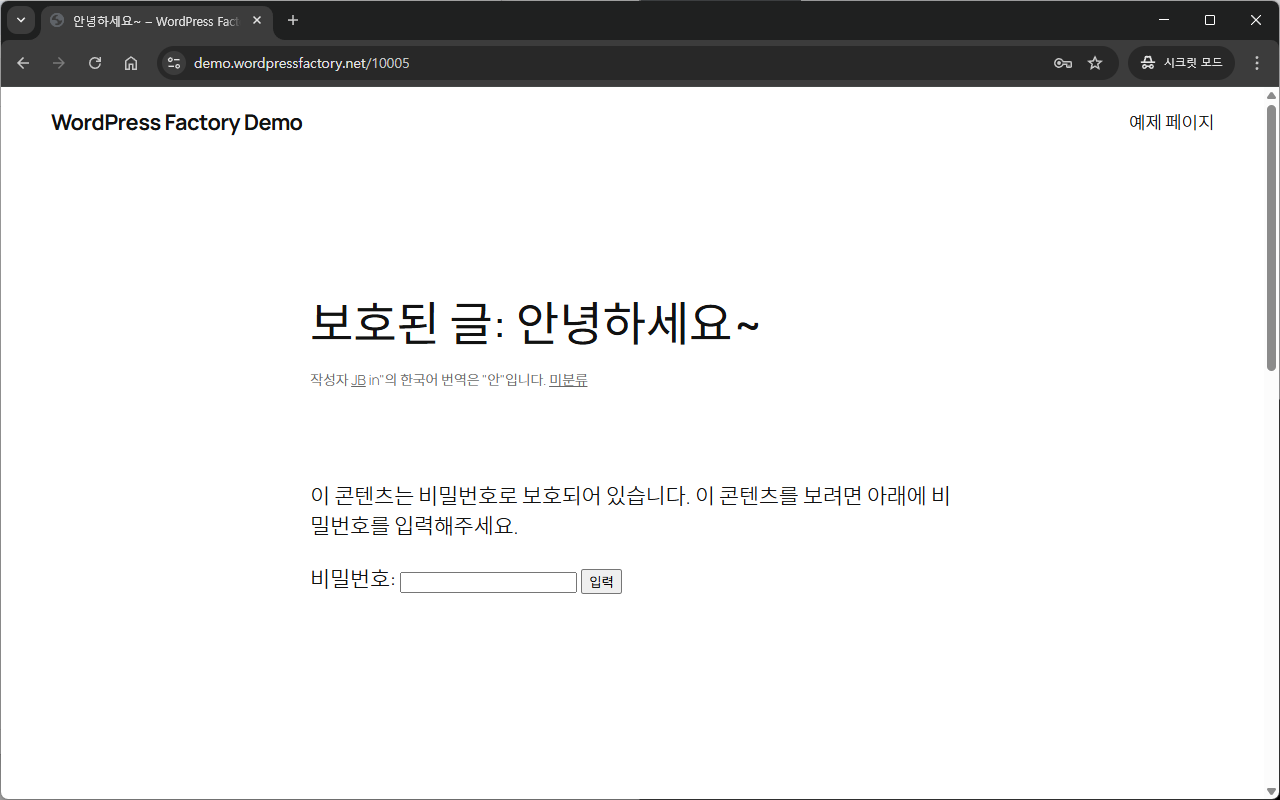 비밀번호를 설정한 포스트는 아래처럼 나옵니다. 비밀번호를 입력하면 내용을 볼 수 있습니다.