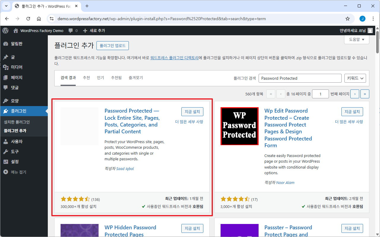 경우에 따라서 사이트 전체를 비밀번호로 보호해야 하는 경우가 있습니다. 이 기능은 워드프레스에 없는 거라 플러그인이 필요합니다. 널리 쓰이는 것은 Password Protected입니다.